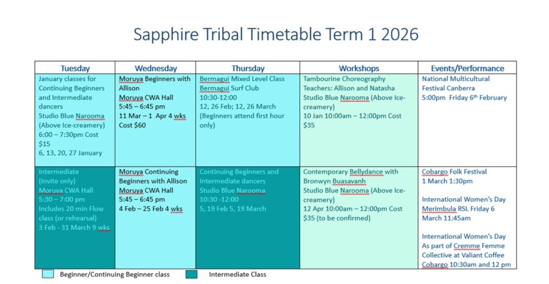 Typically, beginner classes are offered in Spring/Summer each year and these then transition to Beginners and Beyond, then Continuing Beginners as the year progresses.